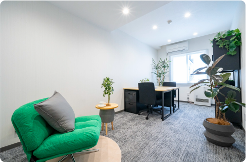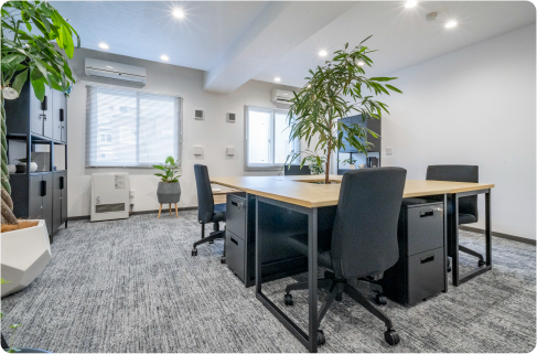 スタートアップやフリーランスの拠点に。少人数のチームにも最適な、ほどよい広さの個室空間です。窓からやさしい光が差し込む明るい室内は、気持ちを軽やかにし、自然と会話が生まれる雰囲気をつくります。アイデアが飛び交い、創造性が育まれる、そんな場所です。デスクやチェアのレイアウトは自由にアレンジ可能。モデルルーム仕様のまま、すぐに入居することもできます。働く場所を、もっと自由に。もっと心地よく。ここから、あなたの新しい仕事のリズムが始まります。